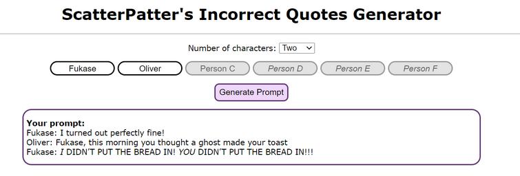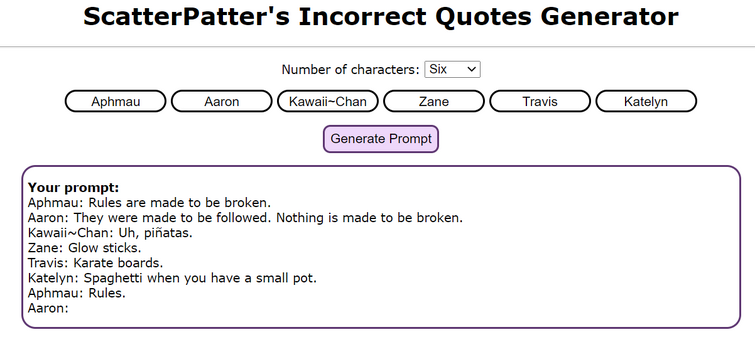 Scatterpatter\'S Incorrect Quotes Generator / Zoey Potts Scatterpatter S Incorrect Quotes Generator I Had A Little Fun With That Incorrect Quotes Generator Call The Inquisitor Idgaf Grimdank : This turns out to be wrong.. Generate a scatter plot online from a set of x,y data. If you need inspiration or simply lack time, choose the. Incorrect quotes characters i was inspired recently by one of my friends to find incorrect quotes using scatterpatter's generator (warning: In the future i plan to implement a feature to filter out prompts that involve shipping, but until then i apologize if any. This generator is not meant to imply any adult/minor, abusive, incestuous, or otherwise problematic ships.
